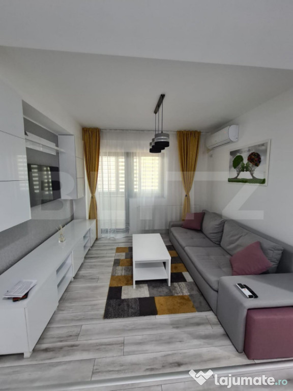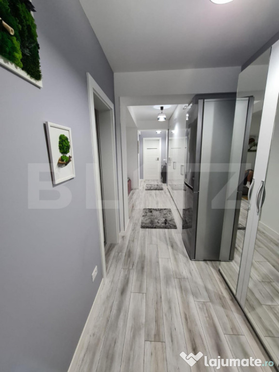 Suprafață totala a apartamentului este de 65 mp, aflandu-se la PRIMA INCHIRIERE, si este mobilat si utilat cu produse de cea mai inalta calitate.