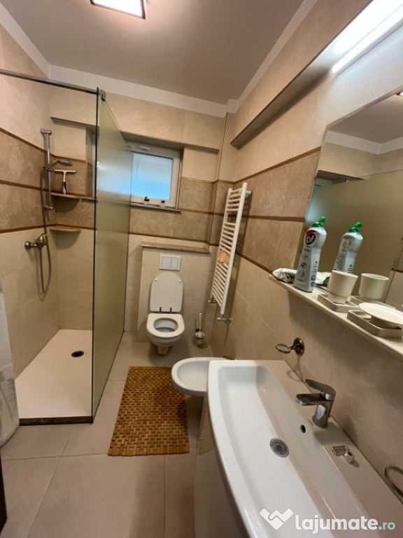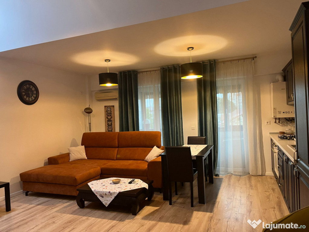 Blitz iti prezinta spre inchiriere un apartament cu 2 camere, situat la etajul 3 al unui imobil recent construit, amenajat intr un stil modern si extrem de practic, in zona linistita.Locuinta este complet mobilata si utilata, centrala proprie, incalzire in pardoseala, aer conditionat, masina de spalat, frigider, plita pe gaz, cuptor electric, ideala pentru o persoana sau un cuplu care apreciaza confortul si rafinamentul intr un spatiu bine compartimentat.
