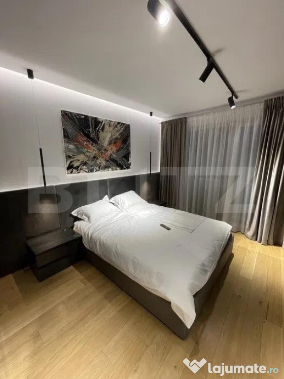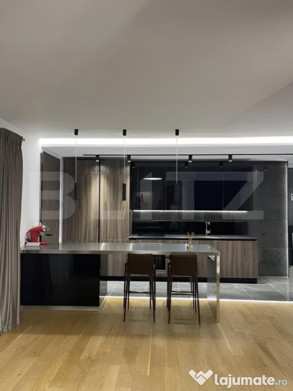 Poziționat la etajul 1 din 5, acest apartament este disponibil pentru inchiriere ultrafinisat, utilat și mobilat cu bun gust. Detaliile de lux includ o bucatarie de la Scavolini, pardoseala din lemn masiv, 2 unitati de aer conditionat Daikin, incalzire in pardoseala, masina de spalat vase, masina de spalat rufe cu uscator, espressor, televizor OLED și multe altele.