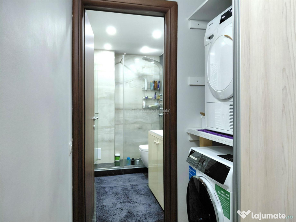 - se vinde mobilat si utilat integral inclusiv tv, candelabre, covoare, perdele, draperii (plita electrica cu inductie Samsung, cuptor electric, cuptor cu microunde, masina de spalat vase Bosch, combina frigorifica cu doua usi LG, masina de spalat haine Bosch, uscator rufe Miele)