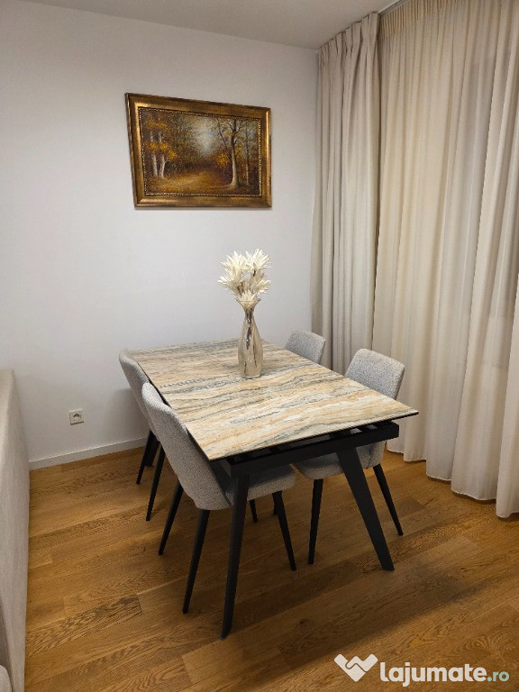 Aviatiei Park Herastrau , 2 camere, 60 mp , 2 Bai , bucatarie completa, masina palat vase, Tv smart living+ tv smart dormitor, Dressing , 2 aparate aer conditionat, masina spalat haine, se vinde cu tot ce este in poze.Complexul dispune de un loc de joaca amenajat pentru copii + teren de basket +teren fotbal , toate gratuite pentru cei ce locuiesc in Complex .