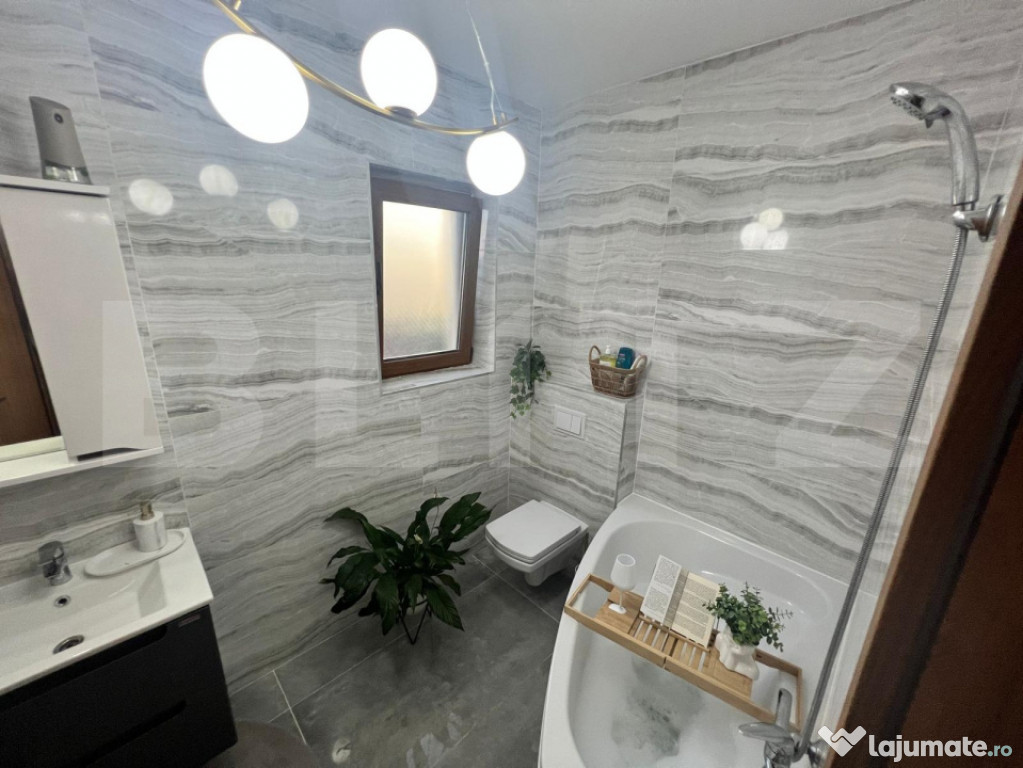 • Baie elegantă, cu cada și obiecte sanitare de calitate;