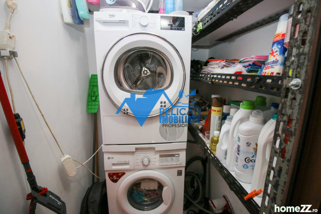 - Dotări și finisaje moderne: Locuința beneficiază de finisaje moderne, inclusiv gresie, faianță și parchet de calitate. Ușa de la intrare este metalică, iar ferestrele sunt din termopan, asigurând o bună izolație fonică și termică. Apartamentul dispune de aer condiționat, o centrală termică proprie și electrocasnice moderne (plita pe inducție, mașină de spălat vase, mașină de spălat rufe, uscător de rufe).