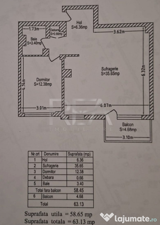 Compartimentare: living, dormitor, bucătărie, baie și balcon.