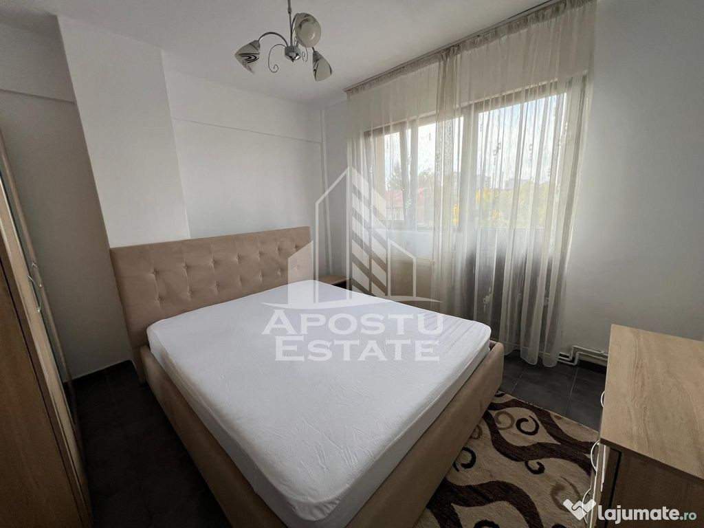 APOSTU ESTATE va propune spre inchiriere un apartament cu 2 camere, situat intr-o zona linistita si bine conectata la principalele puncte de interes din Timisoara – zona Dambovita, la 500 m fata de Shopping City Timisoara.Apartamentul are o suprafata utila de 75 mp si este compartimentat eficient, oferind un spatiu ideal pentru un stil de viata practic si confortabil. Se inchiriaza complet mobilat si utilat.