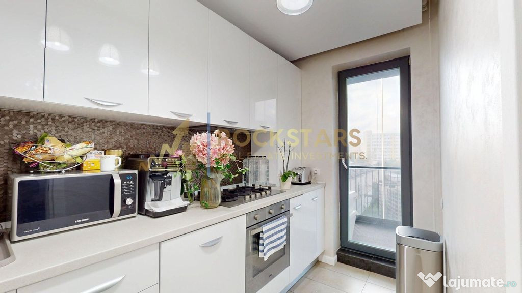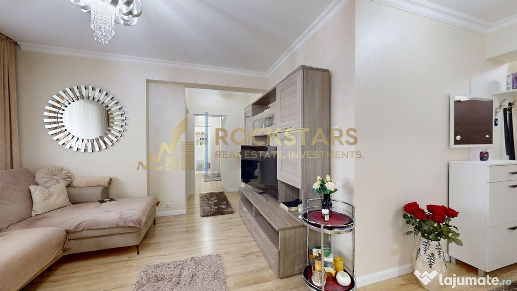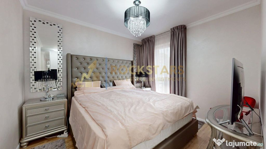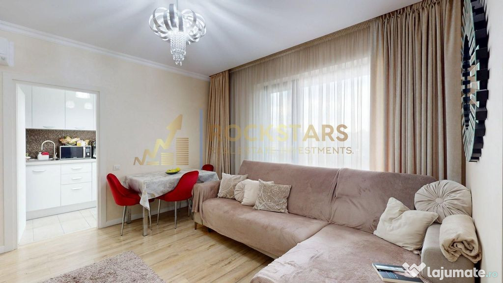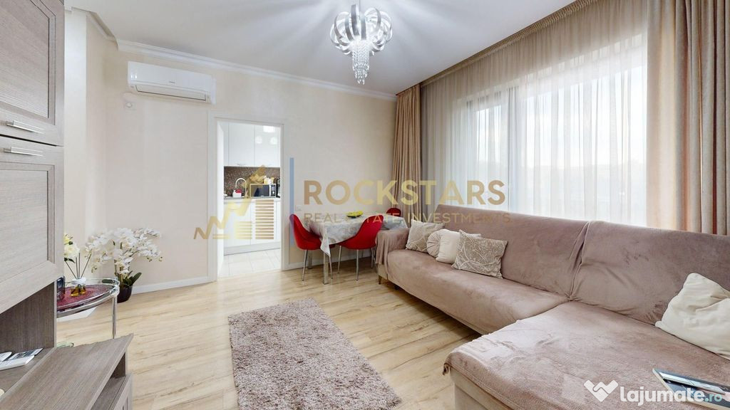 Apartamentul are o compartimentare gandita pentru viata de zi cu zi: living spatios cu zona de dining, bucatarie separata, 2 dormitoare si 2 bai complet utilate, finisat modern si pregatit pentru a fi locuit imediat.