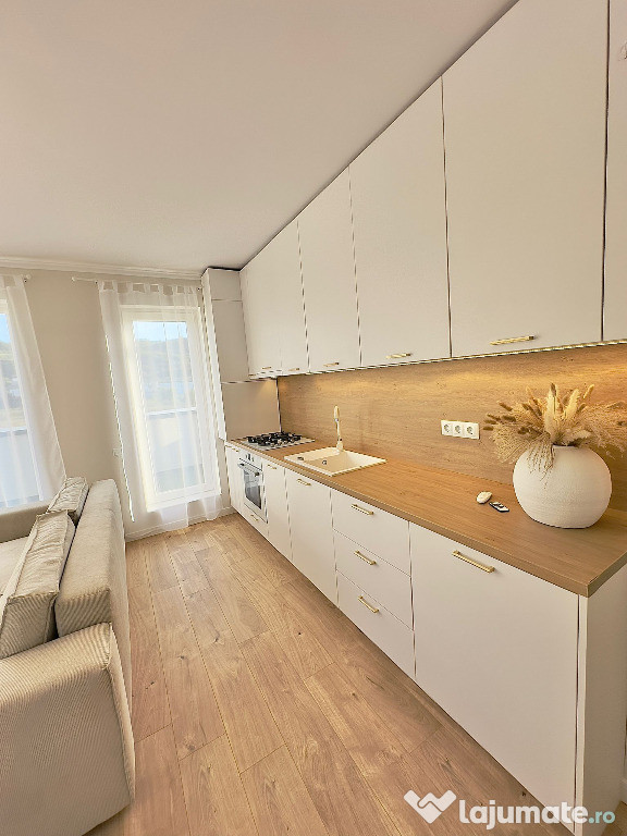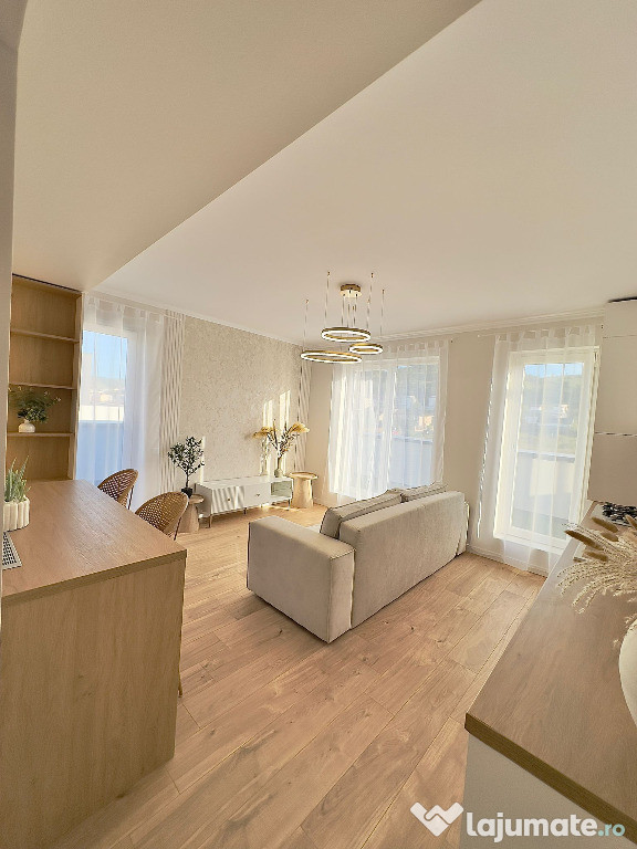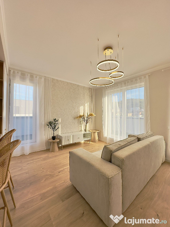 Se oferă spre vânzare un apartament cu 2 camere, situat la etajul 3 al unui imobil cu regim de înălțime P 3, în zona Urusagului din Florești.Apartamentul este de tip confort 1, semidecomandat, având o compartimentare practică și funcțională:-hol de acces-living cu bucătărie open-space-dormitor-baie-terasă generoasă de 30 mpProprietatea se vinde complet mobilată și utilată, cu mobilier realizat la comandă și dotări de calitate. Este echipată cu centrală termică proprie și finisaje moderne: parchet laminat, gresie și faianță.Orientarea sud-vestică asigură lumină naturală pe tot parcursul zilei și confort termic sporit.Există posibilitatea de achiziționare a unui loc de parcare la prețul de 4.500 euro.Confort: 1