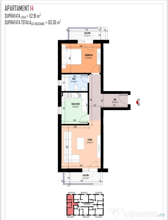 Vă propunem spre vânzare un apartament cu 2 camere, decomandat, având o suprafață utilă totala de 63.30 mp, disponibil la etajele 2 si 3 ale unui imobil nou, cu regim de înălțime P+3E+Pod, finalizat în anul 2025.Finisaje și predare: