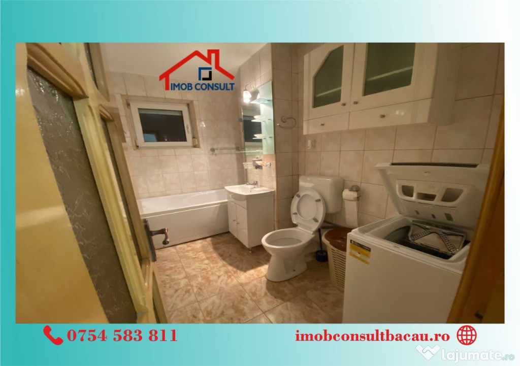 Imob Consult Bacau vă propune spre închiriere un apartament cu 2 camere, situat într-o zonă foarte bine cotată – Sala Sporturilor, ideal pentru rezidență. Apartamentul are compartimentare decomandată, beneficiază de o suprafață utilă generoasă și se remarcă printr-o luminozitate excelentă și o stare foarte bună de întreținere.Locuința este amplasată la parterul unui bloc cu 4 etaje, bloc izolat termic, și dispune de balcon închis, centrală termică proprie, asigurând confort pe tot parcursul anului. Se închiriază complet mobilată și utilată, fiind pregătită pentru mutare imediată.