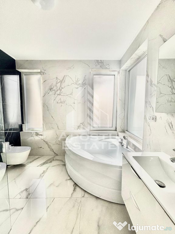 - tamplarie de aluminiu, geam cu 3 sticle pentru izolare atat fonica cat si termica superioara, foarte mari si luminoase.