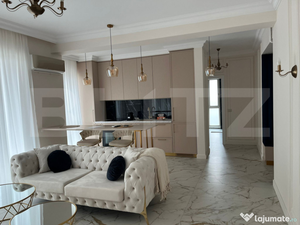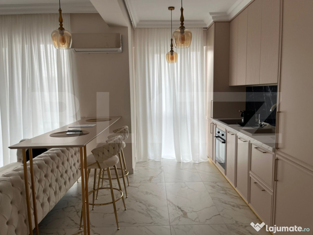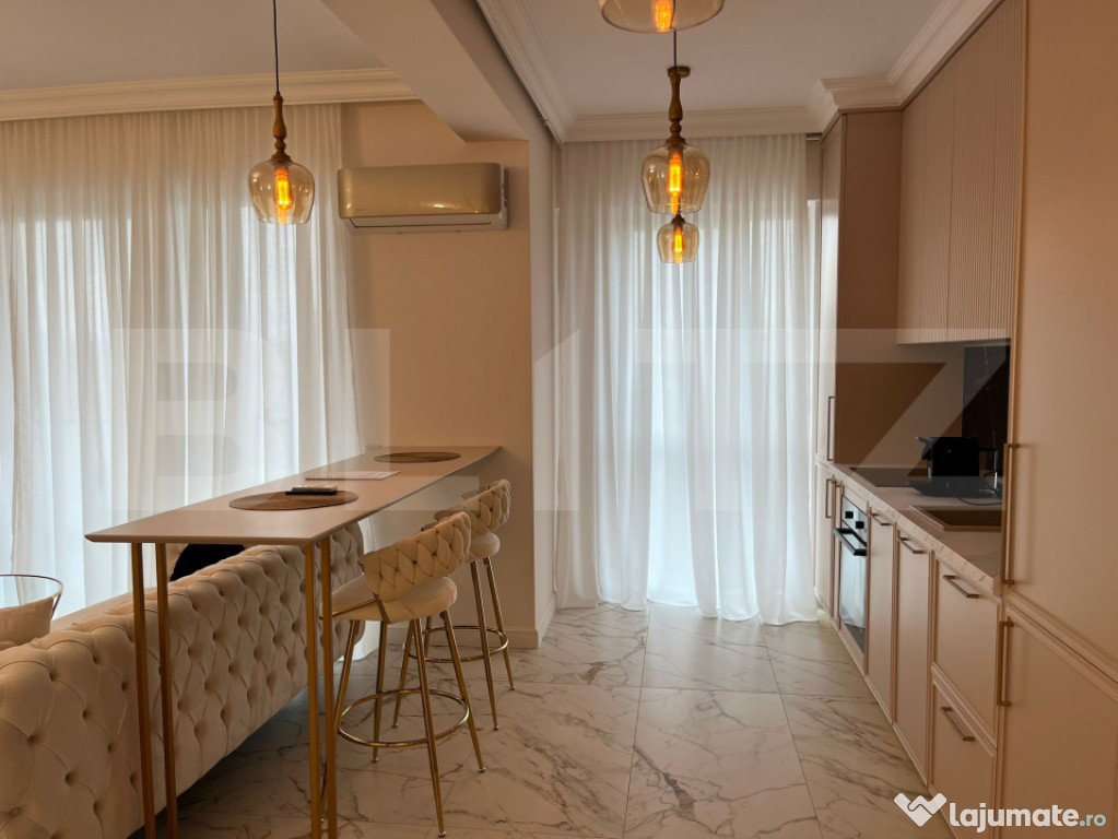 Este finisat modern, complet mobilat și utilat, dotat cu toate facilitățile necesare pentru un confort optim. Beneficiază de încălzire prin pardoseală și contorizări separate.