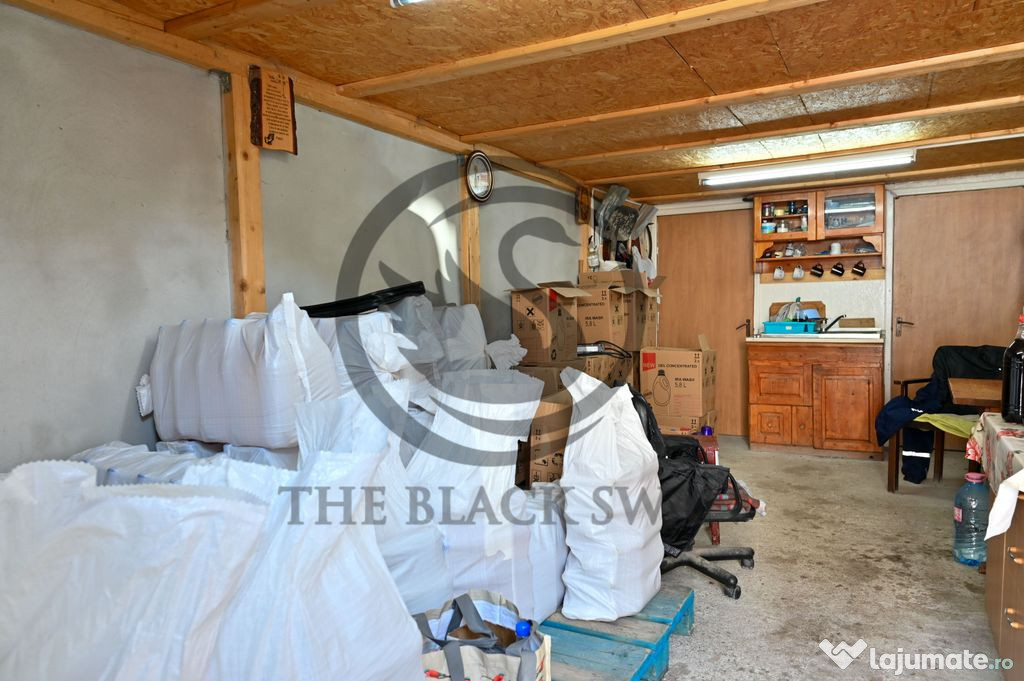 Garaj disponibil spre vânzare, la doar 200m distanță, preț 25.000€ – 60 mp utili dispuși pe două niveluri (parter + pod mansardat), cu baie de serviciu, spații de depozitare și o cameră spațioasă la mansardă conectat la apă, canalizare si electricitate.
