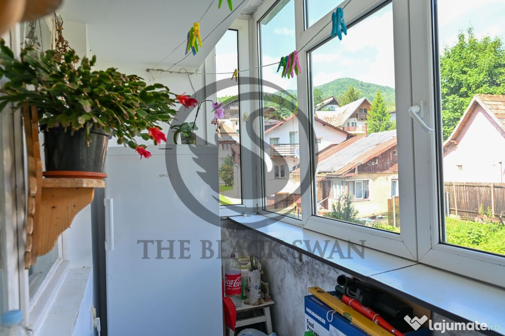 The Black Swan, agenția ta imobiliară, vă propune spre vânzare un apartament cu 2 camere, semidecomandat, situat în Azuga, pe Strada Ritivoiu, Nr. 3 – o zonă centrală, liniștită și foarte accesibilă. Proprietatea se află la etajul 1 dintr-un bloc cu 3 etaje construit în 1965, neexpertizat, reabilitat termic cu polistiren de 10 cm pe exterior.Cu o suprafață utilă de 44.03 mp și un balcon generos de 3.57 mp, apartamentul are o suprafață utilă totală de 47.6 mp și suprafață construită de 58.67 mp, oferind un spațiu eficient și confortabil.