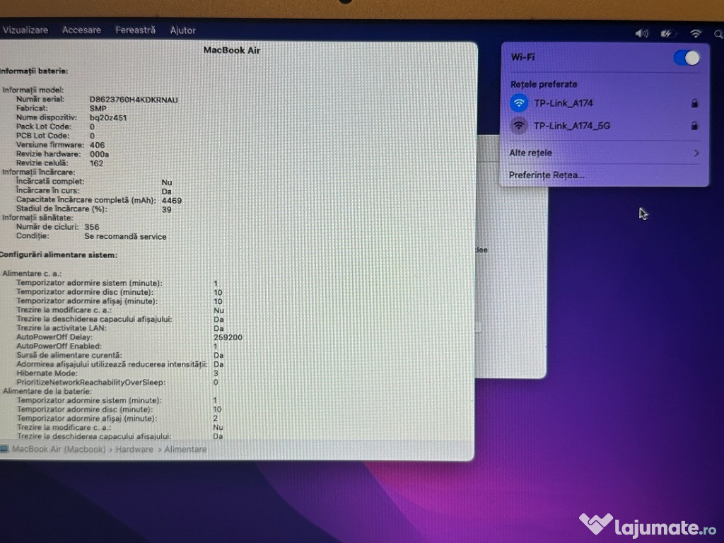 Bateria este originala si are doar 356 cicluri,dar prezinta eroare Service Recommended.Este foarte posibil sa-si revina in timp.Merge fara incarcator si tine destul de mult.