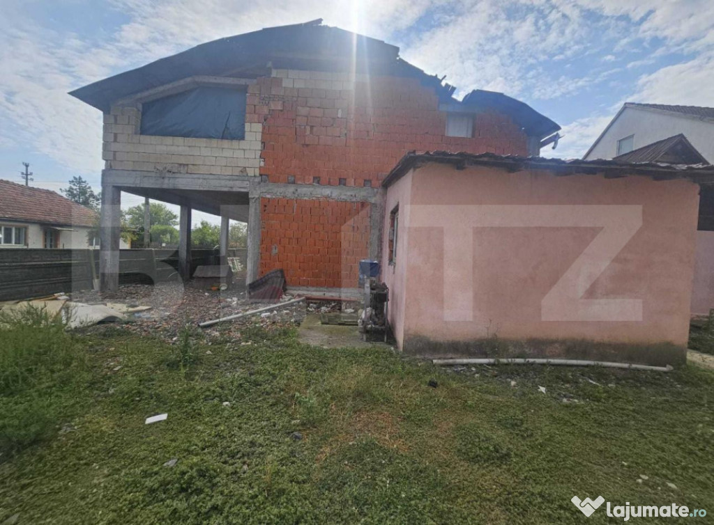 o casă la roșu, P+M, așa cum se vede în poze, ce oferă un bun punct de plecare pentru finalizarea unei locuințe confortabile.