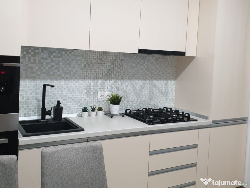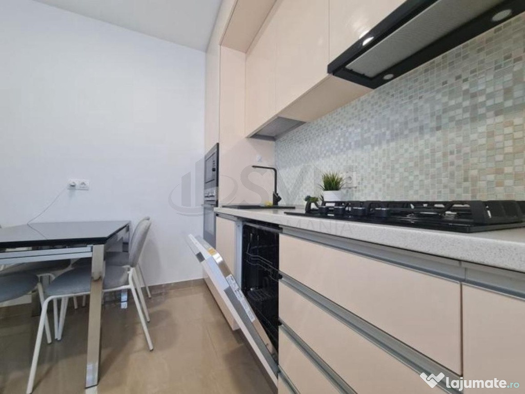 Locuinta este complet mobilata si utilata, fiind pregatita pentru mutare imediata. Livingul este luminos, dotat cu o canapea extensibila spatioasa si aer conditionat, oferind o atmosfera confortabila. Bucataria este inchisa si complet echipata cu toate electrocasnicele moderne: masina de spalat vase, cuptor, aragaz, cuptor cu microunde si frigider. Dormitorul dispune de pat matrimonial extensibil si dressing generos, iar baia are cada si geam pentru ventilatie naturala.