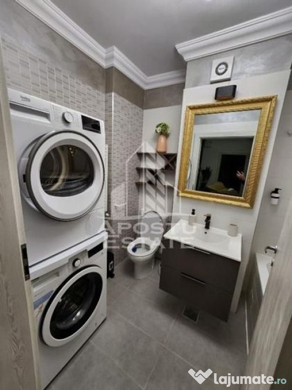 Apostu Estate propune spre inchiriere un apartament modern cu 2 camere, complet mobilat si utilat, situat in complexul rezidential City of Mara, la doar 1 km de centrul Timisoarei si 1.5 km de Iulius Town. Locatie premium, ideala pentru persoane care doresc confort, siguranta si acces rapid catre zonele de interes.Apartamentul dispune de o suprafata de 55 mp utili, avand urmatoarea compartimentare: