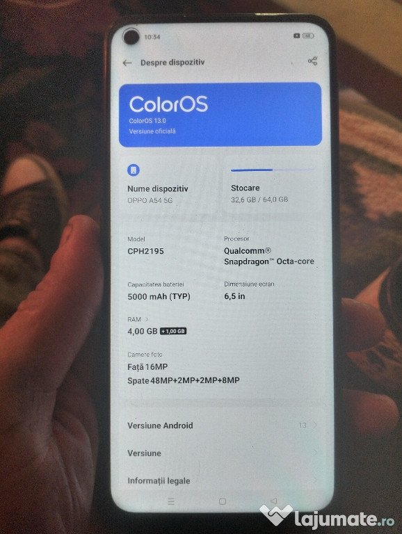 telefonul arată bine , folosit doar câteva zile ..Anuntul Vând Oppo A54 impecabil abia folosit este adaugat de pe LaJumate.ro.