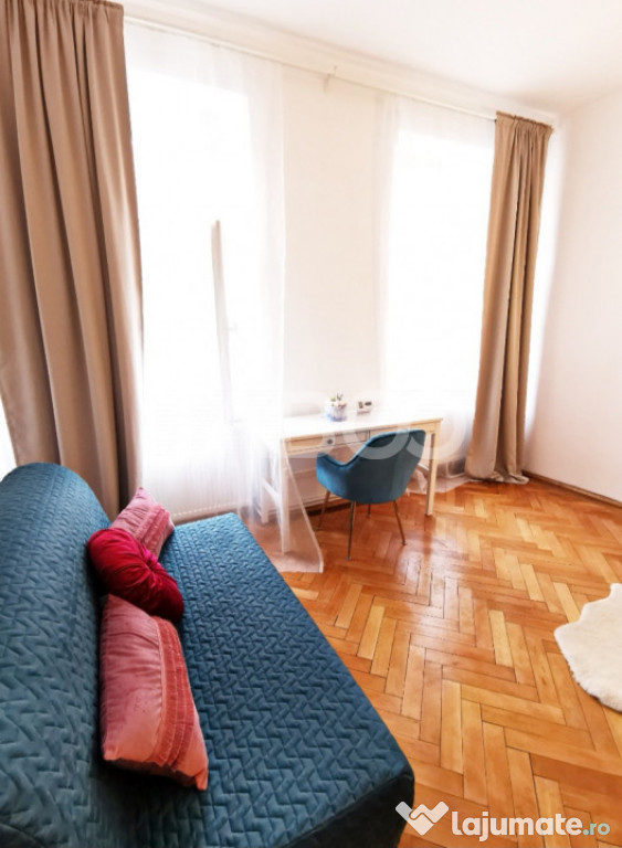 Garsoniera de inchiriat, decomandata, 55 mp, zona Orasul de Jos, Sibiu.Garsoniera ideala pentru tine, daca vrei sa locuiesti in inima Sibiului, in zona Orasul de Jos! Spatioasa si luminoasa, ofera o priveliste superba spre Biserica Evanghelica si se afla chiar in centrul istoric al orasului.