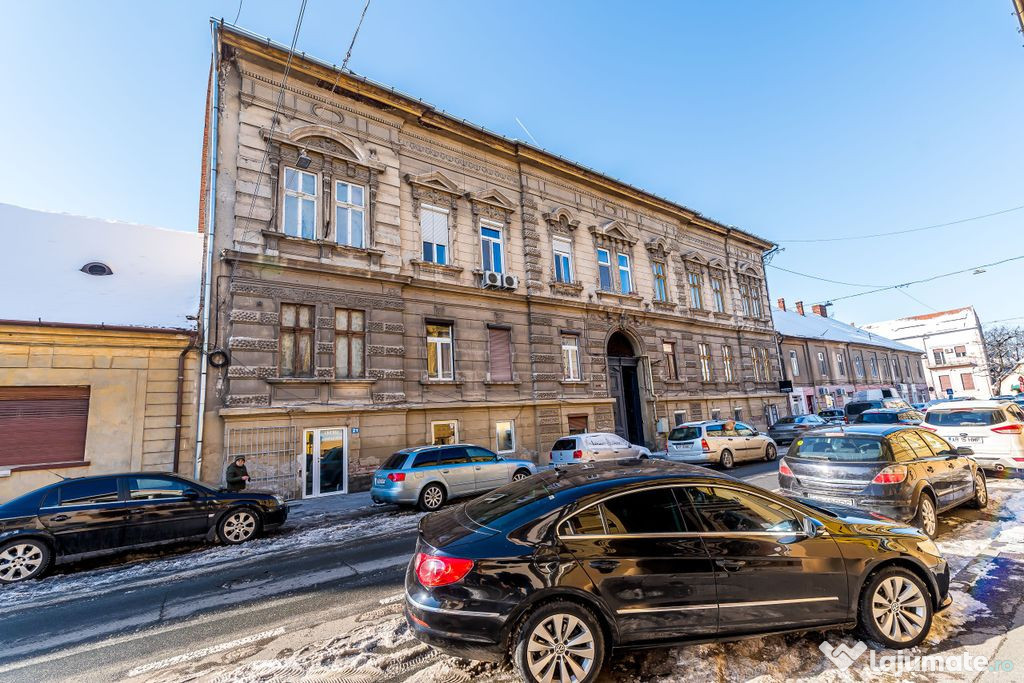 Vă prezint un apartament cu 2 camere + living + antreu, baie și bucătărie (2 camere în cf) situat la parterul înalt al unui imobil situat ultracentral, mai exact pe strada Lucian Blaga.Apartamentul are 113 mp utili și 181 mp construiți, fiind configurat în stilul generos al clădirilor vechi: camere mari, o bucătărie, o baie și un hol comun care poate fi reorganizat în funcție de nevoi.