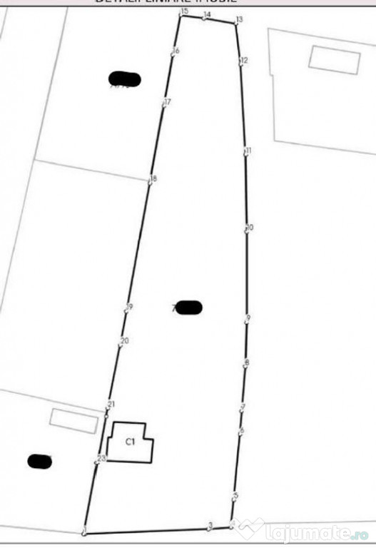 - teren in suprafata de 1.500 mp din acte, 1.703 mp din masuratori, din care 500 de categorie curti constructii si 1.000 mp ( din acte)/1.203 mp ( din masuratori) - arabil