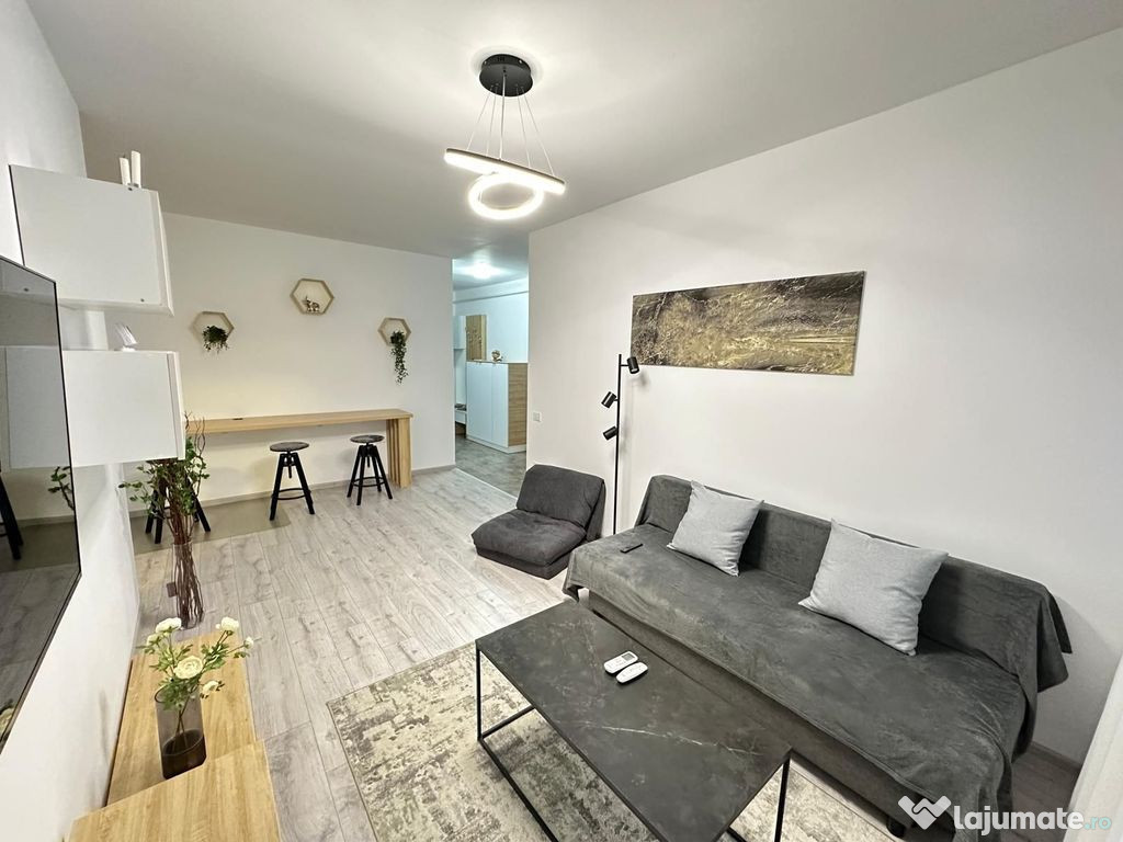 Se închiriază un apartament cochet, modern și luminos, situat la etajul 8/8 al unui bloc nou, finalizat în 2021, în complexul rezidențial Grand Kristal Residence.Cu o suprafață totală de 65,33 mp și un balcon generos de 13 mp, în formă de L, apartamentul oferă o priveliște frumoasă și multă lumină naturală pe tot parcursul zilei.