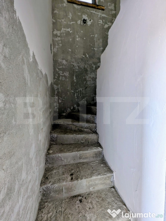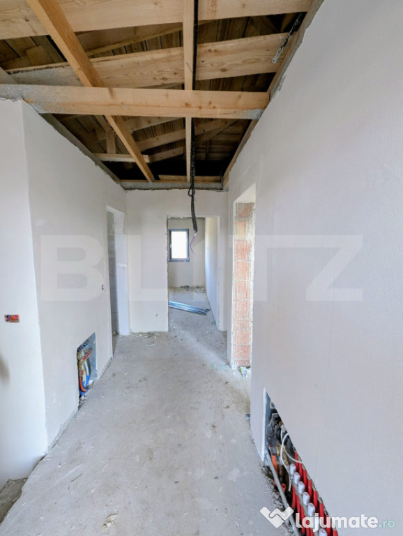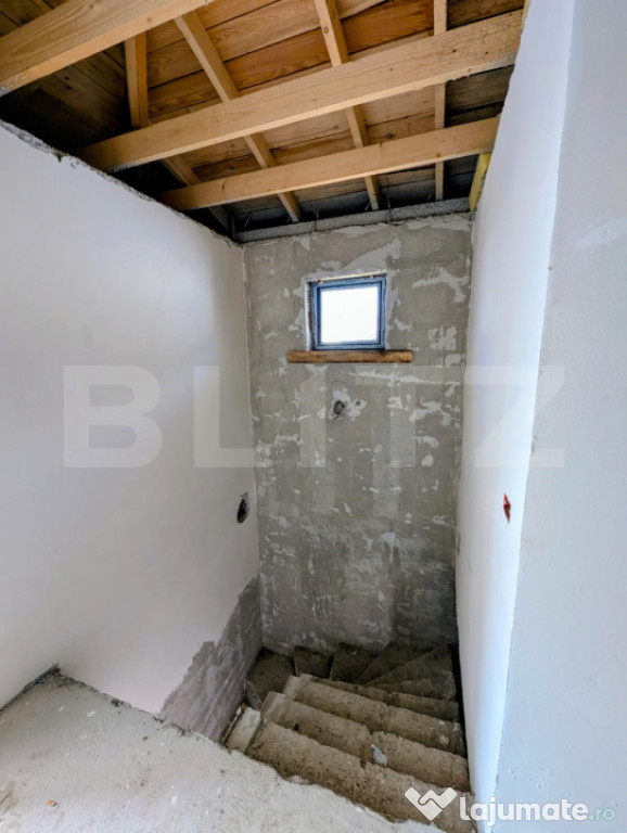 Descoperă confortul și liniștea unui duplex modern, situat într-o zonă linistita din Miroslava, la doar 2 minute de mers cu mașina de centrul localității. O locuință construită cu grijă pentru detalii, intr-o zona rezidentiala noua, linistita si sigura, perfectă pentru familii care își doresc spațiu, confort și intimitate. Constructia este racordata la toate utilitatile, fundatie din beton termoizolata si zidarie (inclusiv peretii interiori) din caramida, Suprafata utila este de 107 mp iar terenul aferent este de 250 mp.Compartimentarea este una practica, la parter gasim un living generos cu iesire pe terasa, bucatarie, hol, baie si spatiu depozitare. La etaj avem 3 dormitoare, balcon, hol, baie si pod.