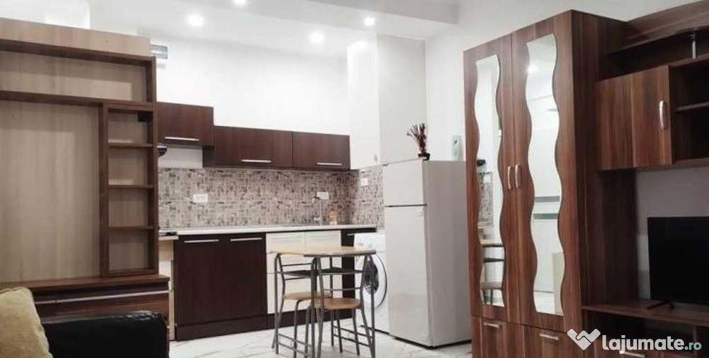 Garsoniera este dotata cu mobilier de calitate, ce dispune de spatii de depozitare generoase, pat mare, tip coltar extensibil, frigider cu congelator, masina spalat rufe, TV, incalzire in pardoseala (doar setati temperatura dorita).