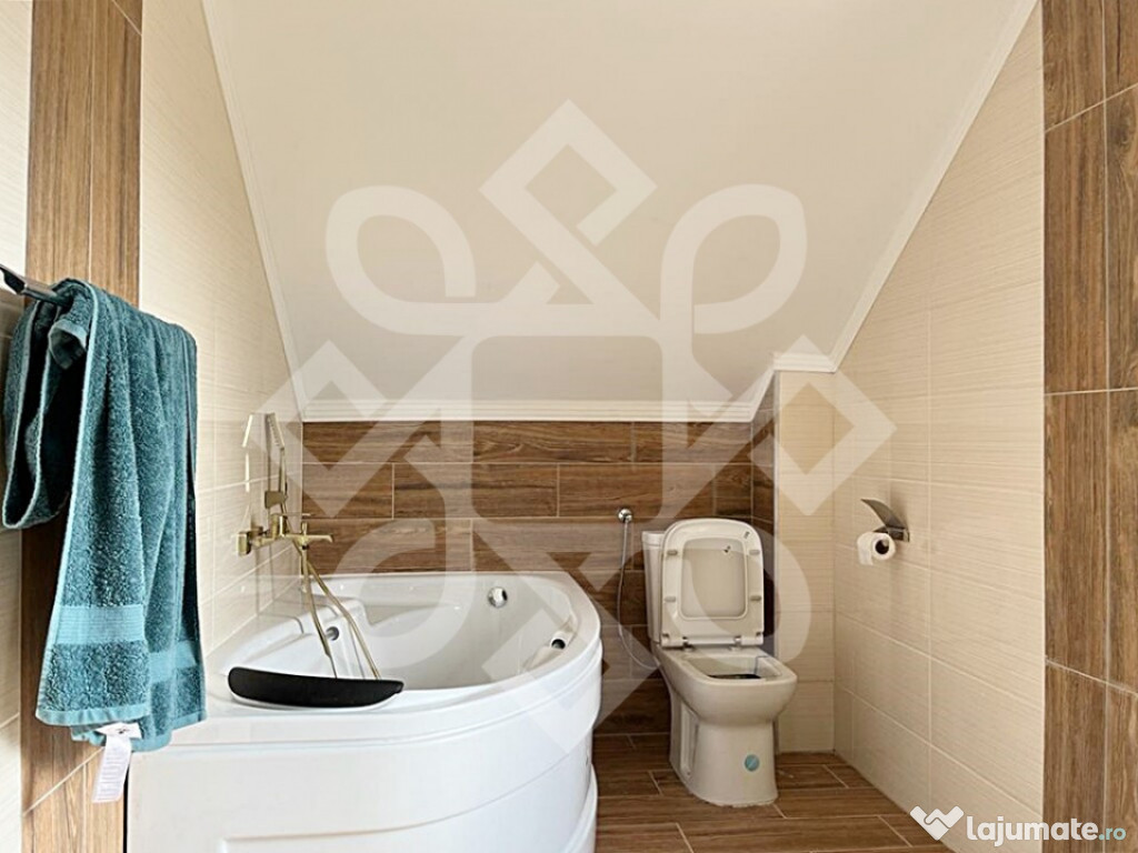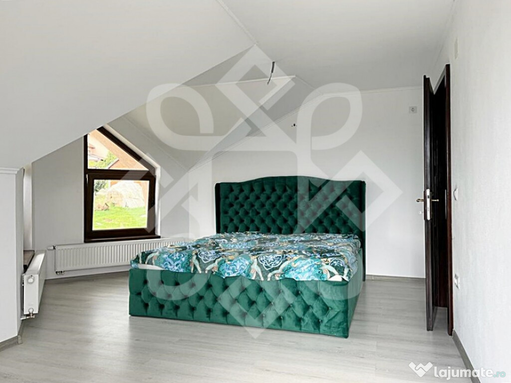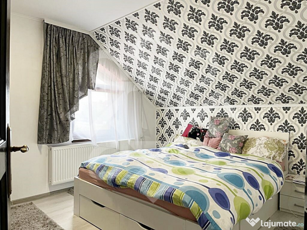 The attic is intended for the rest space, where we find 2 bright bedrooms, one equipped with its own dressing room, and the other with a balcony, from where you can admire the view of the Oradea Hills. In the hallway is the bathroom with bathtub, as spacious and bright as all the rooms in the house.