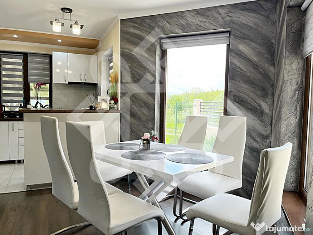D`Art Imob va ofera spre inchiriere o casa moderna cu priveliste superba, situata in Saldabagiu de Munte.Casa este compusa din parter si mansarda, cu o suprafata utila de 110 mp, amplasata pe un teren cu suprafata de 662 mp.