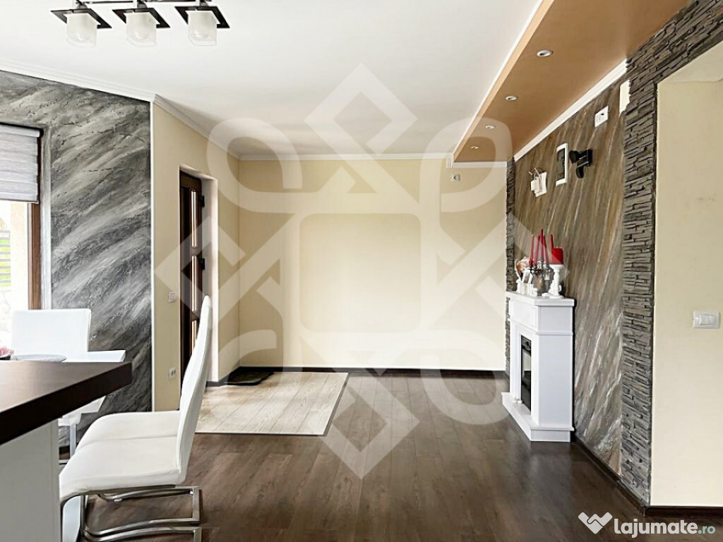 Finisajele casei sunt calitative, alese cu bun gust si creeaza o atmosfera confortabila si eleganta. Semineele electrice din incaperi completeaza perfect designul interior al casei, dar sunt si practice in serile racoroase.