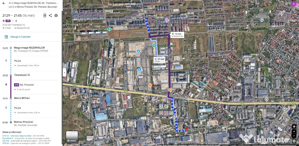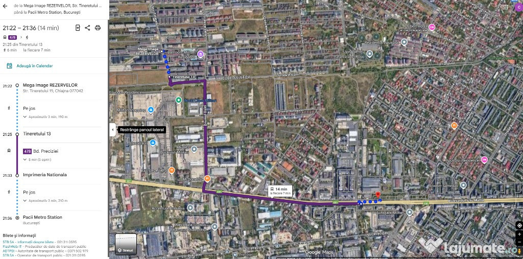 Statiile de autobuz 483 si 478 sunt la 100-150 m, in 15 minute esti la metrou la Pacii sau Preciziei.