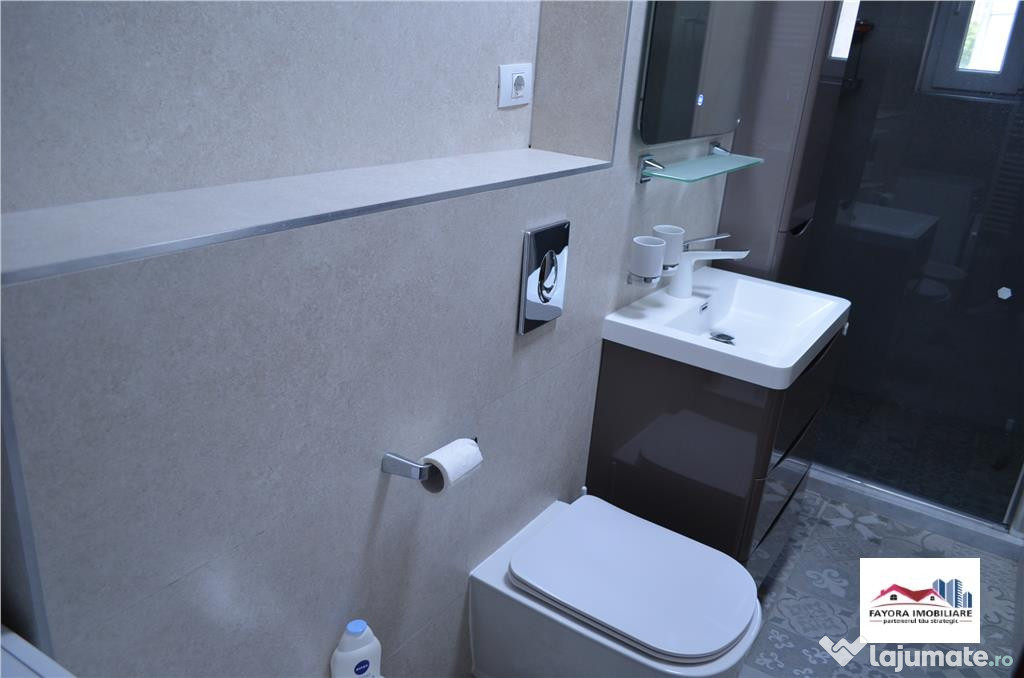 Imobilul este dotat cu: centrala termica, aer conditionat, filtru de apa, geamuri termopan, parchet, gresie, faianta si este utilat cu: frigider, plita incorporata, hota, masina de spalat rufe, televizor in fiecare camera, etc.