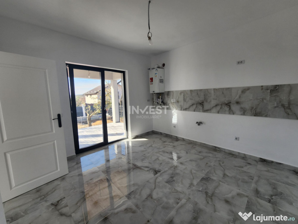 Compartimentare se face astfel : terasa acces , hol intrare, living , bucatarie separata cu iesire in terasa acoperita, hol, 2 dormitoare spatioase (13,5mp fiecare), baie cu cada, spatiu de depozitare generos in pod.