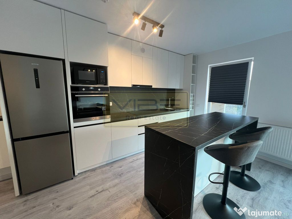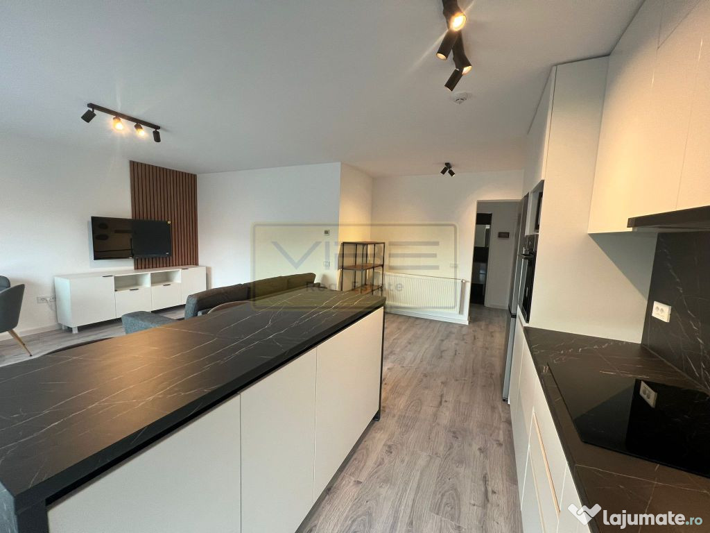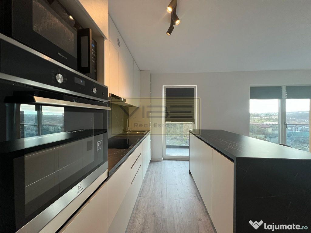 Disponibilitate 16 Ianuarie 2026 ! Apartament cu 2 camere ( suprafata totala 61 mp) , model cu bucatarie de tip open-space, situat in cadrul complexului rezidential Poitiers Towers, intr-un imobil modern dotat cu ascensor de ultima generatie . Apartamentul este mobilat modern cu mobilier, executat la comanda, dispune de bucatarie utilata cu electrocasnice noi de la Electrolux ( plita cu inductie, cuptor electric, hota, masina de spalat vase /masina de spalat haine, cuptor microunde ) iar dormitorul matrimonial are dressing separat pentru depozitare. Incalzirea pentru fiecare camera este gestionata prin termostat de ambient cu afisaj electronic, iar pentru sezonul cald este disponibila unitate AC Inverter 12.000BTU. Piesa principala a apartamentului, o reprezinta balconul tip terasa ce ofera un view superb asupra colinei Bucium si bulevardului Poitiers. Pretul chiriei lunare este de 470Euro(fix), se solicita garantie 470Euro/returnabila , la finalul contractului. Comisionul agentiei este cuantumul unei luni de chirie/usor negociabil la semnarea contractului si predarea cheilor. Nu sunt acceptate animale de companie. Pentru Info suplimentare si vizionarea proprietatii va stam la dispozitie, Senior Broker imobiliar Lingurariu Ciprian-Bogdan.Confort: Lux