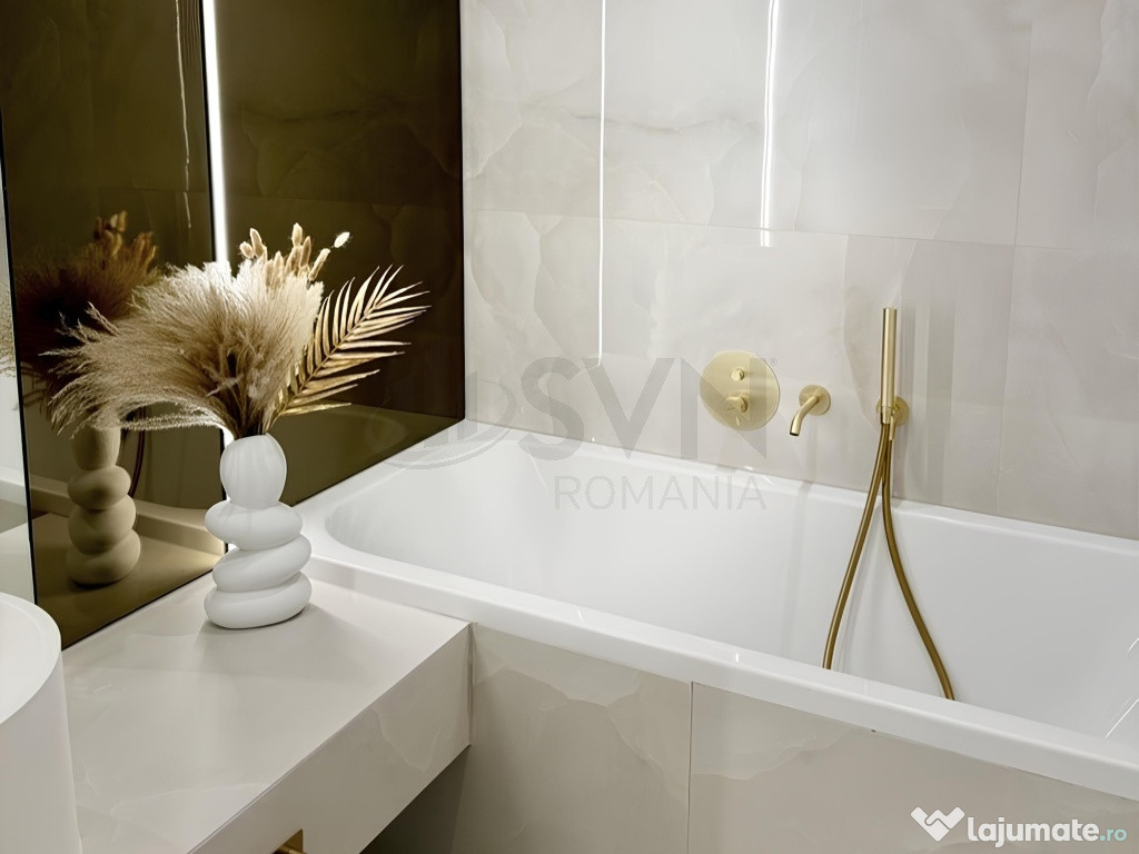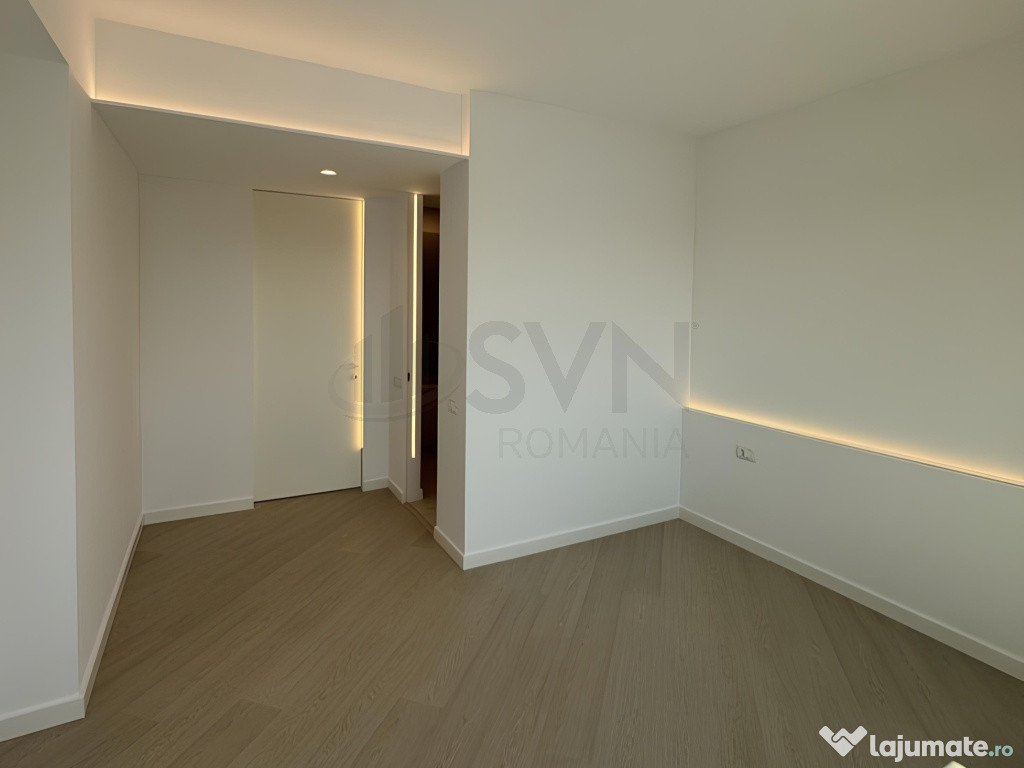 Apartamentul este finisat si dotat la cele mai inalte standarde, cu fatada ventilata SwissPearl, pardoseala flotanta pe balcon, tavane Barissol cu iluminare LED, tamplarie din aluminiu Schuco, ascensoare Otis, usa de acces securizata Pinum/Piacentini, obiecte sanitare Daniel Rubinetterie, usi interioare Filomuro, parchet Balterio, placi ceramice Keratile, sistem de aer conditionat LG Multisplit si centrala termica individuala Ariston.