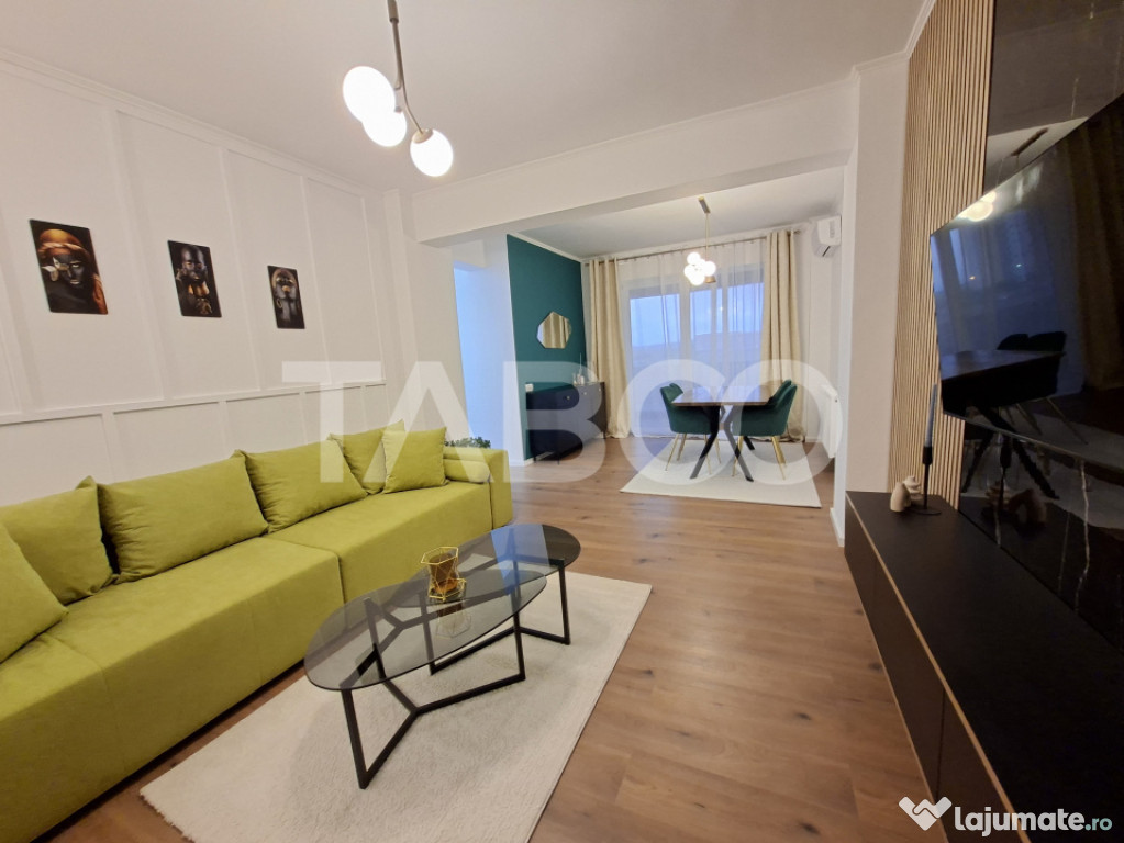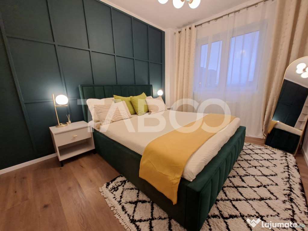Apartament 2 camere de inchiriat, decomandat, 58 mp, zona Doamna Stanca, Sibiu.Apartament mobilat si utilat premium, situat la etajul 1 cu lift, loc de parcare privat, in imediata apropiere de Shopping City.