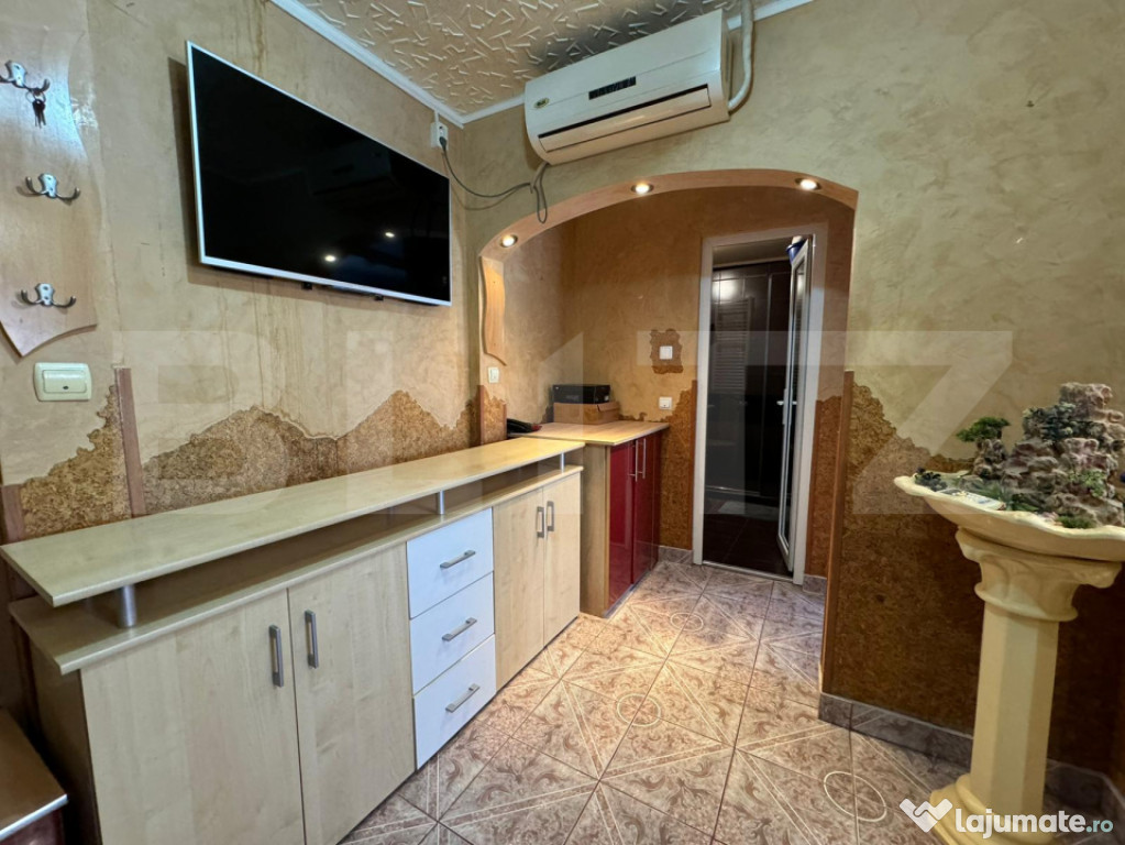 Locuința se vinde complet mobilată și utilată, fiind pregătită pentru mutare imediată. Printre îmbunătățiri se numără instalațiile electrice și sanitare schimbate, finisaje întreținute, încălzire prin sistemul de termoficare și contorizare individuală a energiei electrice. Blocul este cu acoperiș, bine întreținut, iar vecinii sunt liniștiți și prietenoși.