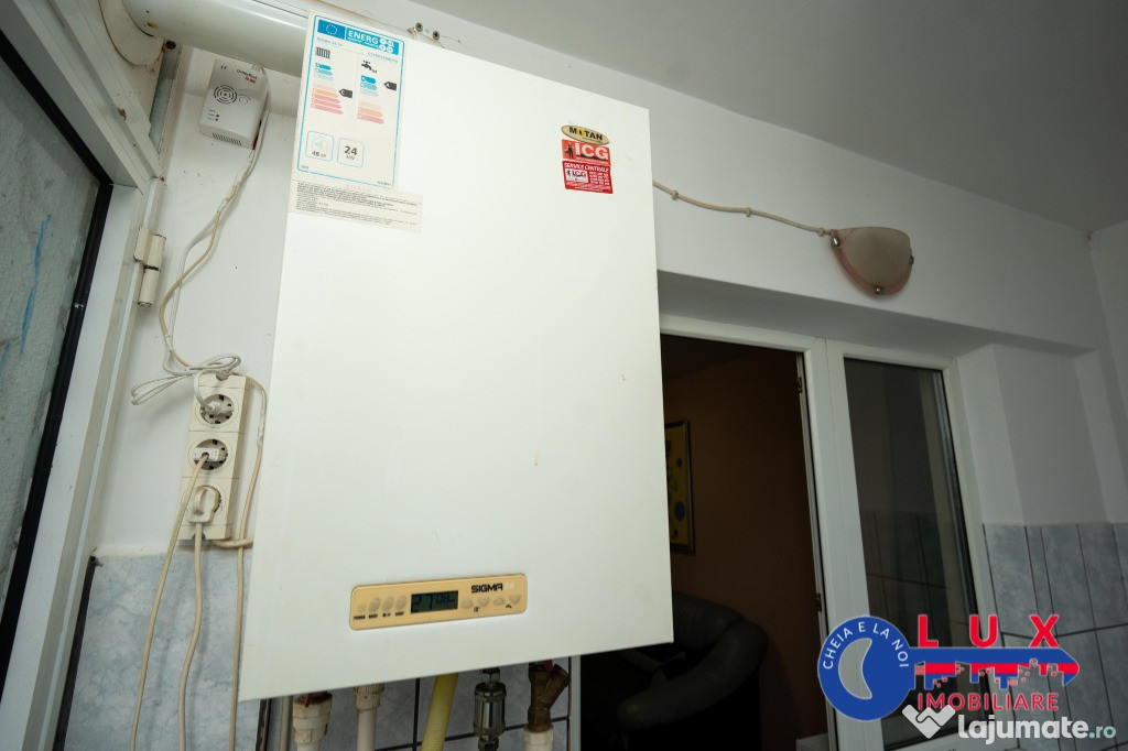 Încălzirea se face prin intermediul centralei proprii pe gaz.