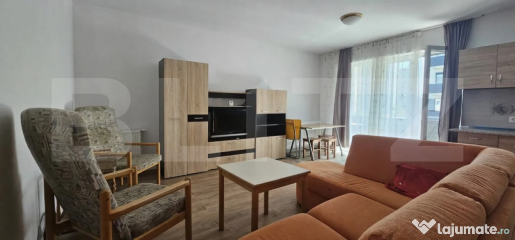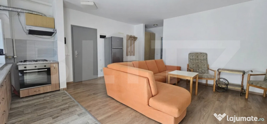 Blitz vă propune spre închiriere un apartament cu 2 camere tip studio, situat în ansamblu Maurer Residence, zona Tractorul – Brașov.???? Localizare de top: acces facil către mijloacele de transport în comun, magazine, cafenele și zone de recreere.