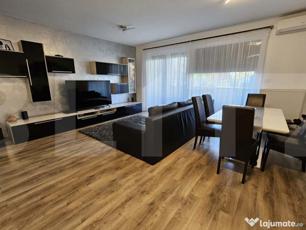 Descoperă rafinamentul și confortul acestui apartament cu 2 camere, situat la parterul unui imobil modern, finalizat în 2018, într-o zonă liniștită, aproape de centre comerciale și mijloace de transport în comun.Caracteristici principale: