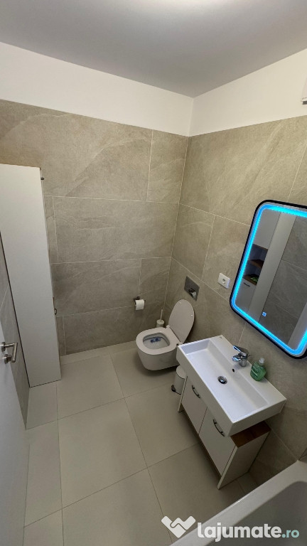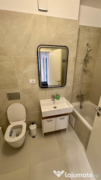 • ???? Baie elegantă, cu cadă, mobilier nou și oglindă iluminată LED