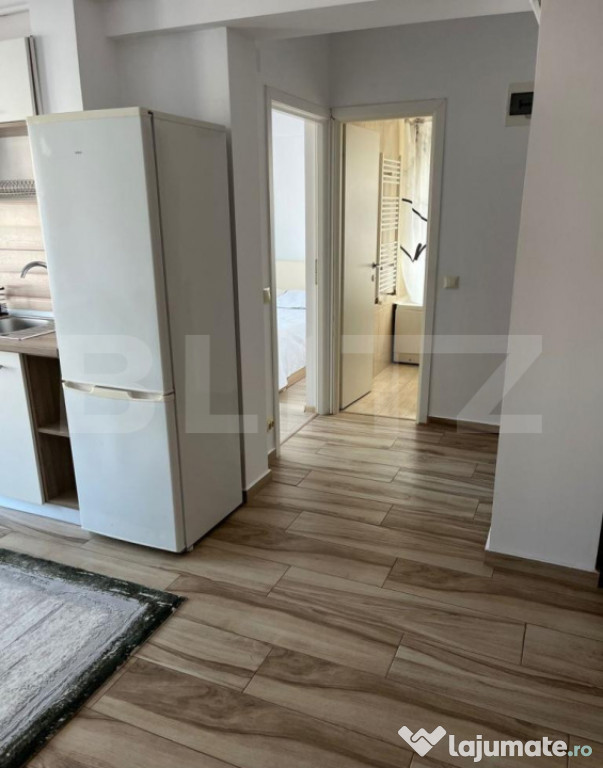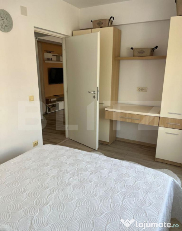 Blitz oferă spre închiriere un apartament cu 2 camere, situat într-un bloc modern, într-o zonă liniștită și cu acces facil către punctele de interes ale orașului.Locuința are o suprafață utilă de aproximativ 50 mp și este semidecomandată, compartimentată astfel: living spațios cu bucatarie open space dormitor confortabil, baie și hol.