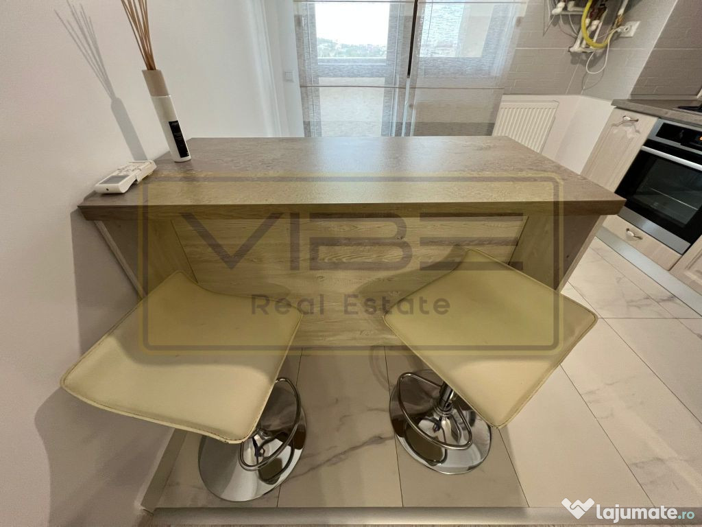 Agentia imobiliare VIBE REAL ESTATE va ofera spre achizitie un apartament modern cu 2 camere( INTABULAT) situat in zona Pacurari - Scoala Petru Poni ( benzinaria MOL), la doar 10 minute de Copou , Universitatea Alexandru I. Cuza si 15 min de UMF, in cadrul complexului Concept Residence din Sos. Moara de Foc nr 33. Locuinta are o suprafata totala de 49.43mp ( din care 41.24mp utili+8.19mp balcon tip terasa), fiind compartimentat in living cu bucatarie open-space, dormitor matrimonial si baie cu cada de colt. Apartamentul este mobilat modern, bucataria utilata cu electrocasnice de ultima generatie, iar incalzirea se face cu centrala termica+termostat de ambient wireless. De asemeni pentru sezonul cald, imobilul dispune de unitate AC Daikin Inverter. Cele doua camere au iesire catre o terasa superba, ce ofera o vedere panoramica asupra zonei Copou. Terasa dispune de mobilier pentru terasa si pergola retractabila pentru protectie solara sau precipitatii. In pretul de vanzare al apartamentului se ofera 1 LOC DE PARCARE PRIVAT, de tip suprateran, in curtea complexului , accesul fiind securizat cu bariera + telecomanda. Liber, disponibil cu mutare imediata! PRETUL de vanzare este de 129.000Euro. negocoabil Se accepta plata prin Credit Ipotecar sau Cash. Se percepe comision catre agentiei !Confort: 1