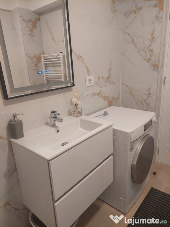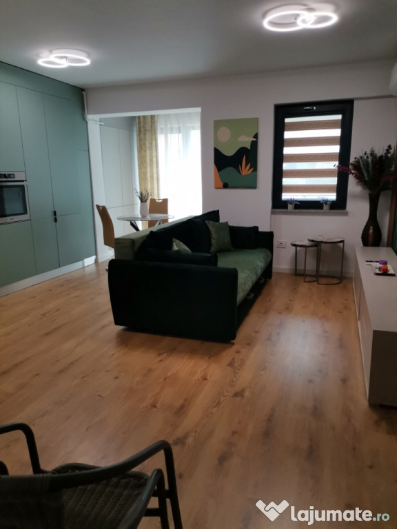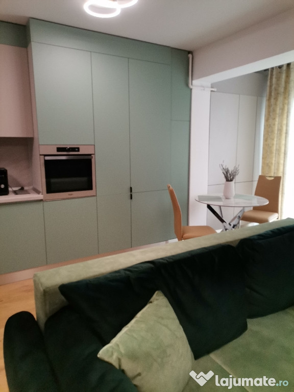 Mobilat lux cu mobila Mobexpert, Ikea și Staer. Bucătăria este complet utilata cu electrocasnice de top, inclusiv mașina de spălat vase Bosch si vase și accesorii pentru bucătărie.