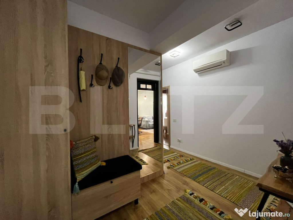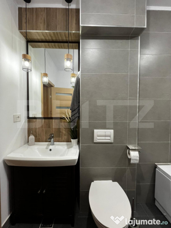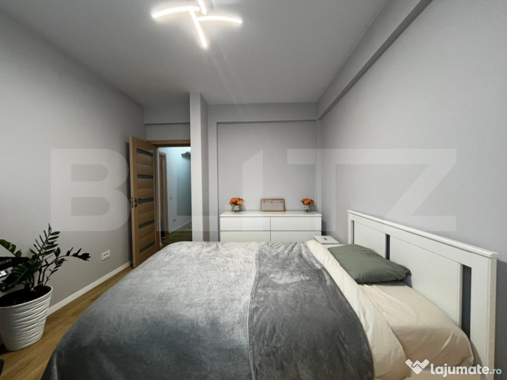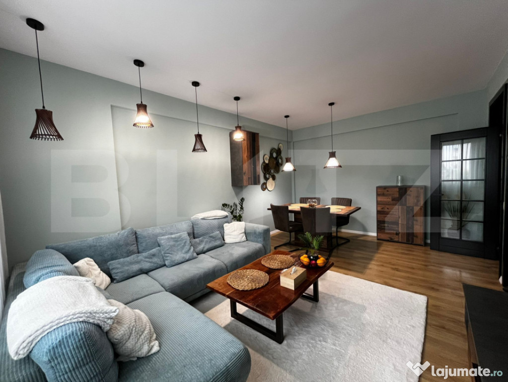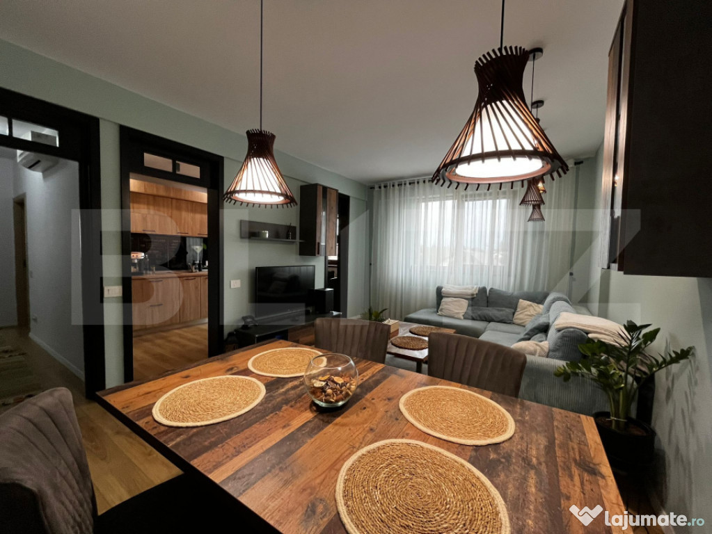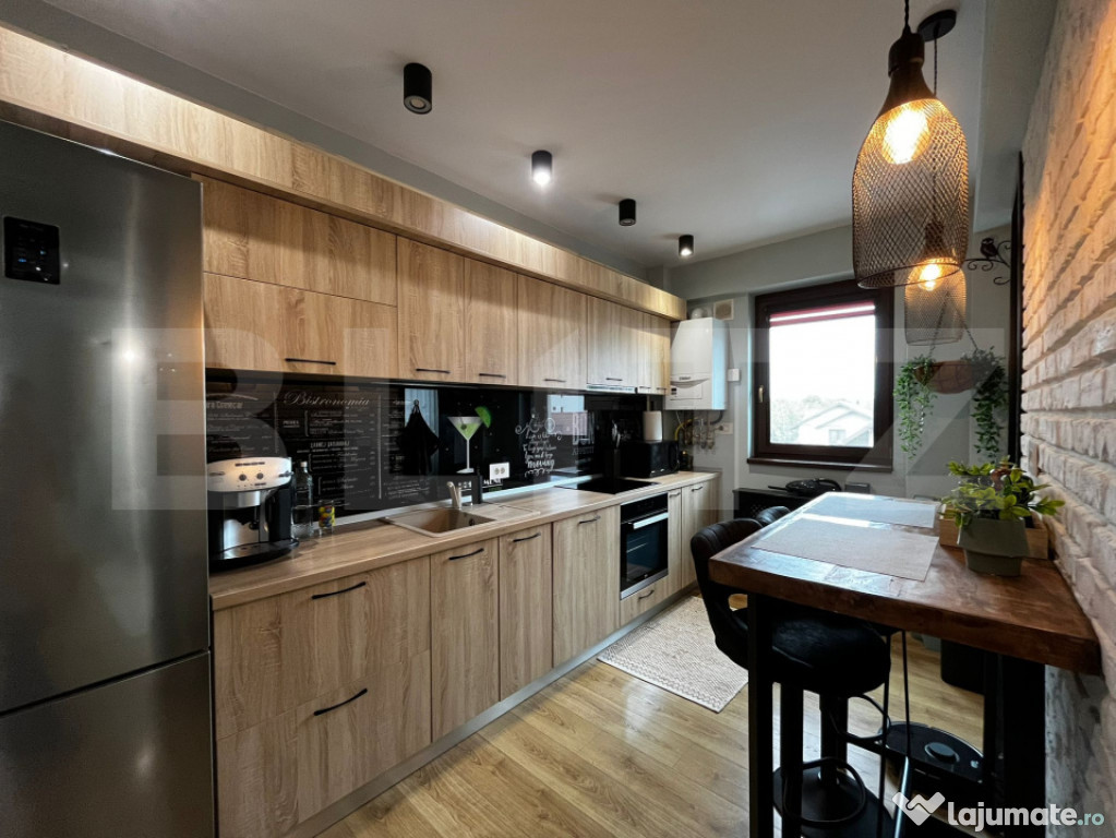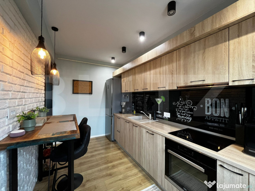 BLITZ vă prezintă spre vânzare un apartament de 3 camere situat în Soleia Residence, Valea Lupului — un bloc nou, construit în 2022, la etajul 2 din 4. Suprafața utilă este de aproximativ 78,5 mp, iar suprafața totală cu balcon inclus ajunge la 83,19 mp. Locuința a fost amenajată cu ajutorul unui designer, în stil modern-industrial, cu finisaje premium și mobilier atent ales, astfel încât noii proprietari se pot muta imediat, „la cheie”. Compartimentarea decomandată oferă funcționalitate și confort: două dormitoare, un living spațios și luminos, o bucătărie complet mobilată și utilată, două băi amenajate cu materiale de calitate, un hol generos și balcon. În plus, apartamentul beneficiază de boxă la subsol, lift și 2 locuri de parcare.Zona aduce un plus de valoare, oferind acces rapid la mijloacele de transport în comun, magazine, hypermarketuri, clinici și restaurante, cu o ieșire facilă din oraș și proximitate față de punctele de interes importante. Proprietatea este ideală atât pentru locuire, cât și pentru investiție, fiind pregătită să ofere un stil de viață modern și confortabil. Vă așteptăm la vizionare!