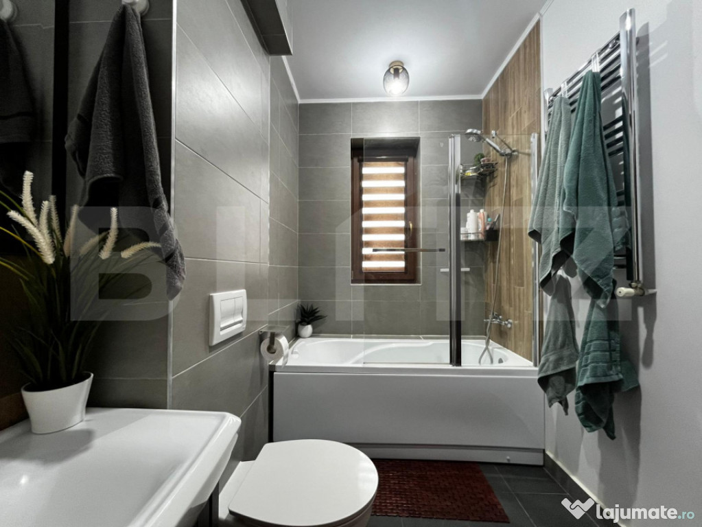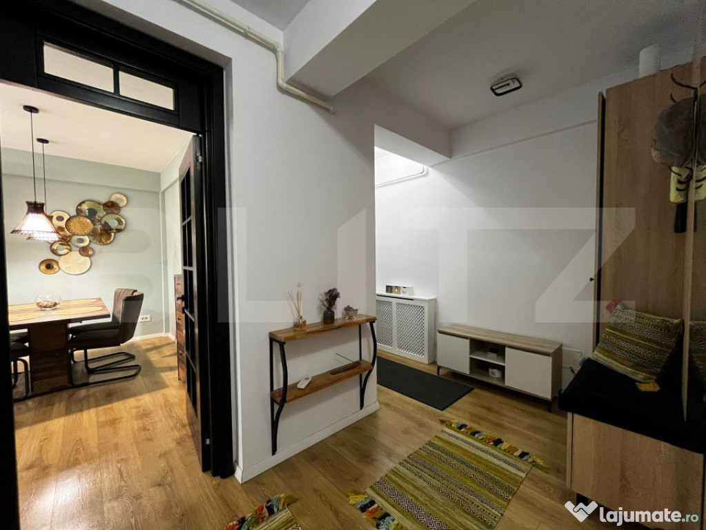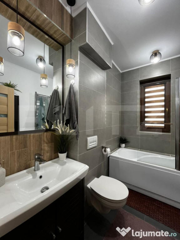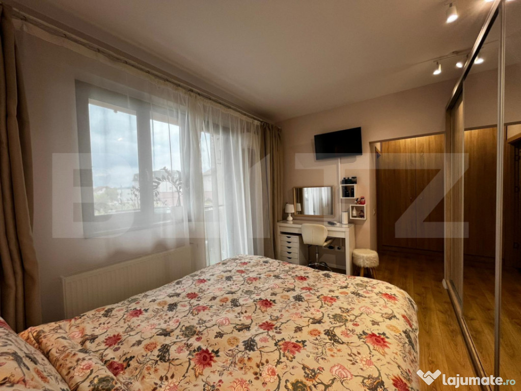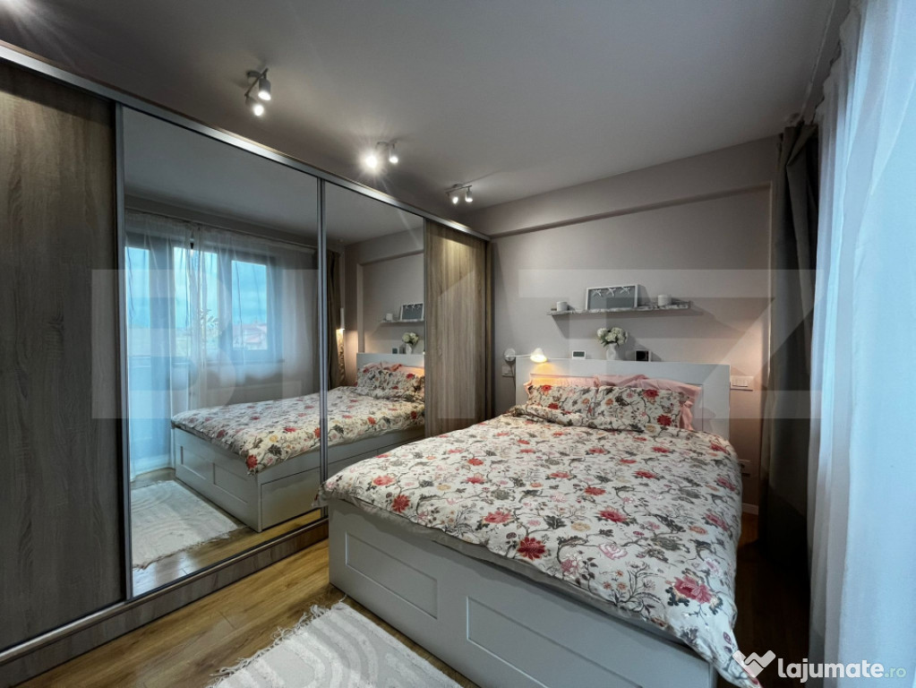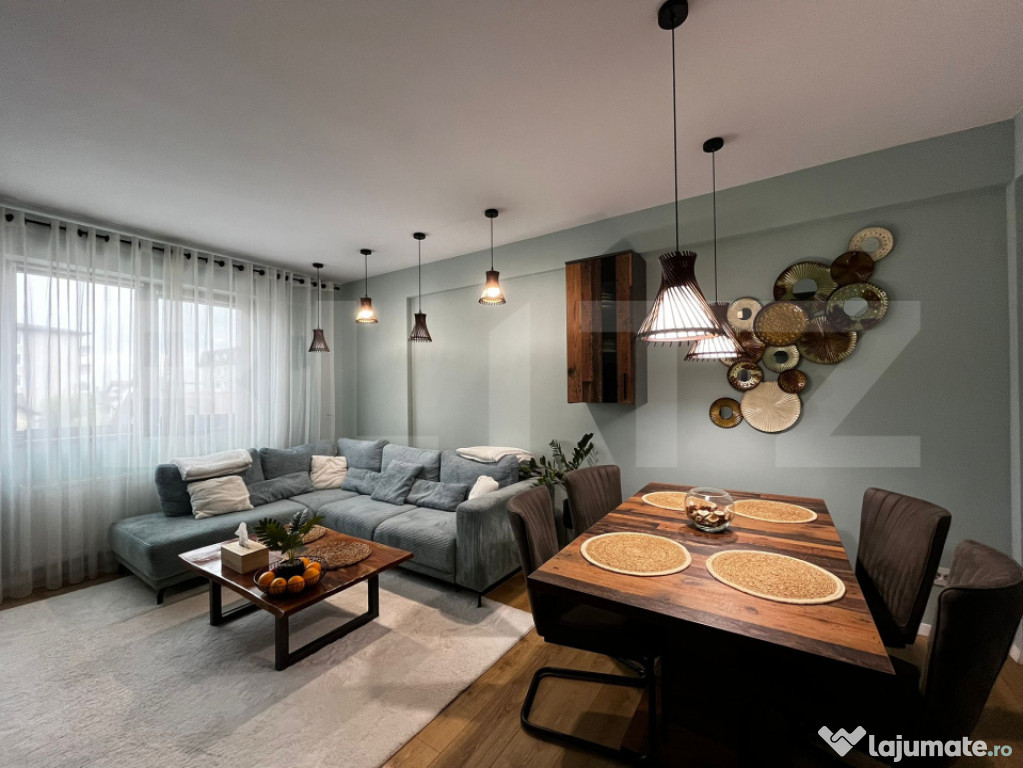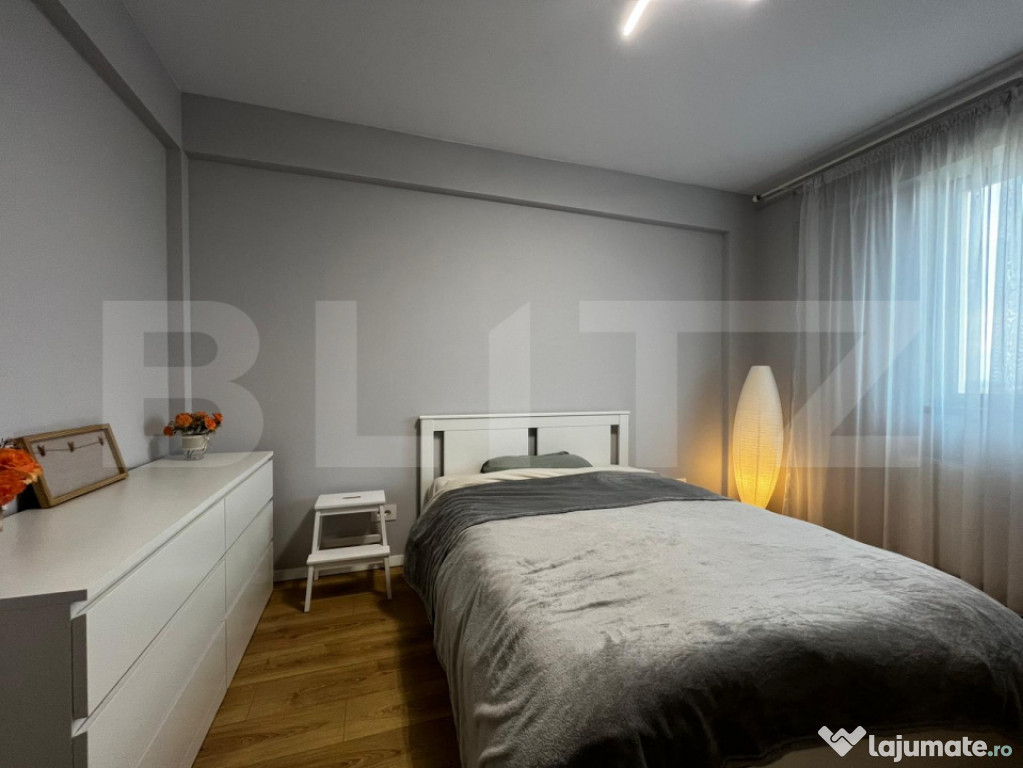 BLITZ vă prezintă spre vânzare un apartament de 3 camere situat în Soleia Residence, Valea Lupului — un bloc nou, construit în 2022, la etajul 2 din 4. Suprafața utilă este de aproximativ 78,5 mp, iar suprafața totală cu balcon inclus ajunge la 83,19 mp. Locuința a fost amenajată cu ajutorul unui designer, în stil modern-industrial, cu finisaje premium și mobilier atent ales, astfel încât noii proprietari se pot muta imediat, „la cheie”. Compartimentarea decomandată oferă funcționalitate și confort: două dormitoare, un living spațios și luminos, o bucătărie complet mobilată și utilată, două băi amenajate cu materiale de calitate, un hol generos și balcon. În plus, apartamentul beneficiază de boxă la subsol, lift și 2 locuri de parcare.Zona aduce un plus de valoare, oferind acces rapid la mijloacele de transport în comun, magazine, hypermarketuri, clinici și restaurante, cu o ieșire facilă din oraș și proximitate față de punctele de interes importante. Proprietatea este ideală atât pentru locuire, cât și pentru investiție, fiind pregătită să ofere un stil de viață modern și confortabil. Vă așteptăm la vizionare!