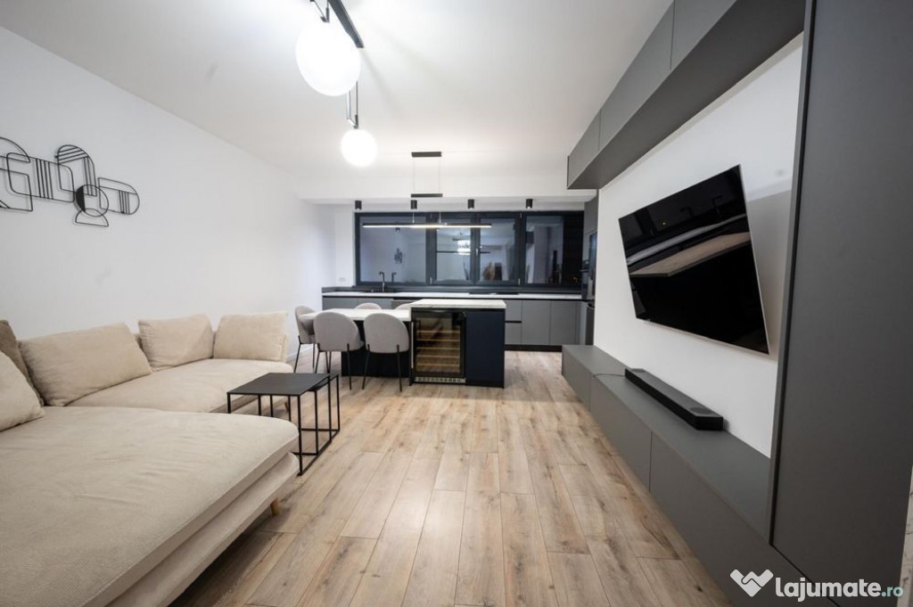 Se ofera spre inchiriere apartament cu 3 camere si 2 bai, situat in complexul Central Parc, intr-un imobil nou, modern, prevazut cu lift. Apartamentul este amplasat la etajul 6 si este complet mobilat si utilat, beneficiind de finisaje si dotari premium, care asigura un nivel ridicat de confort si functionalitate.Locuinta dispune de o compartimentare eficienta si este dotata cu: