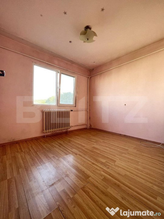 BLITZ vă propune spre vânzare un apartament de 3 camere cu o suprafață utilă de 43 mp, poziționat la etajul 4 într-un imobil de 4 etaje, fiind compartimentat astfel: 1 living, 1 bucătărie, 2 dormitoare, 1 baie cu geam, situat în cartierul Mănăștur, zona Parâng, cu acces imediat la mijloacele de transport în comun, magazine, grădinițe, școli, benzinării, parcuri, și multe alte facilități.Apartamentul se vinde nemobilat, fără centrală proprie. Imobilul este înconjurat de spațiu verde, orientare pe sud-est și o priveliște plăcută. În cadrul lucrărilor s-au instalat geamuri termopan și ușă metalică. Disponibil imediat, vă așteptăm la vizionare!