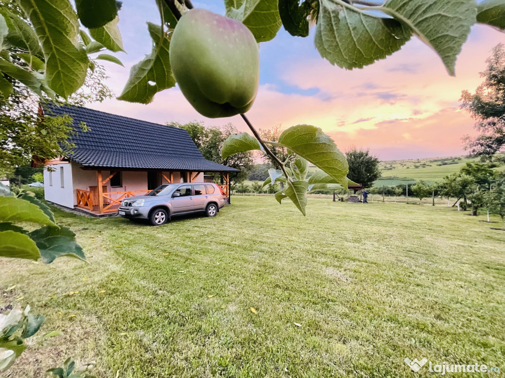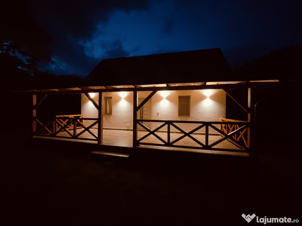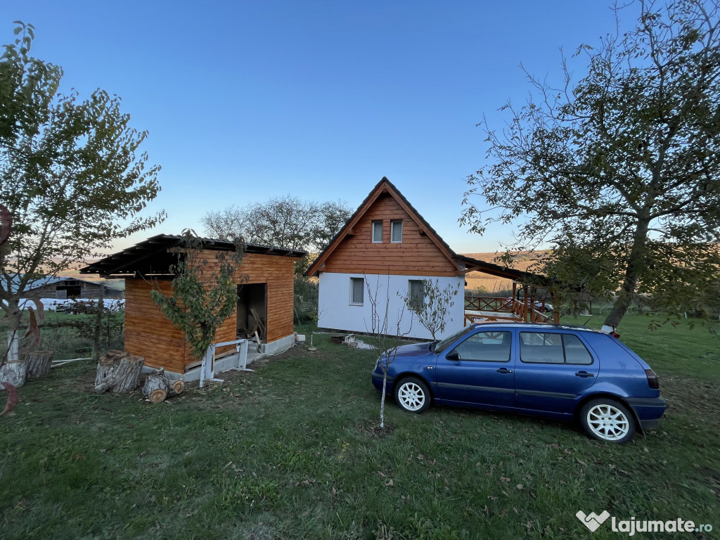 Cabana de vânzare – Confort și natură pe un teren generos de 2499 m². Prețul este în euro.Descoperă o proprietate ideală pentru relaxare : cabana construită solid din BCA, cu fundație de beton și izolație termică din vată bazaltică de 10 cm,asigurând confort termic excelent atât vara, cât și iarna.